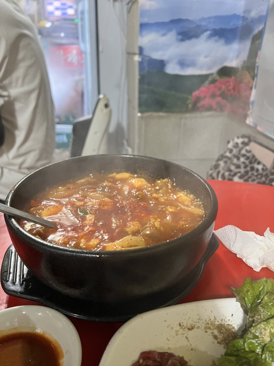 - 얼큰한 순두부찌개 – 얼큰한 국물이 입맛을 돋우고 해장용으로도 딱 좋았습니다. 밥과 함께 먹으니 든든했어요.