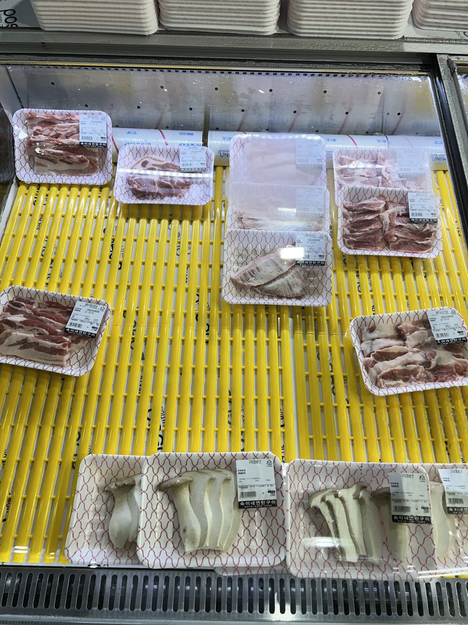고기는 직접 냉장 진열대에서 원하는 부위를 선택해 가져올 수 있었습니다. 삼겹살, 목살, 등심덧살 등 다양한 부위가 준비되어 있었고 가격도 합리적이었어요.