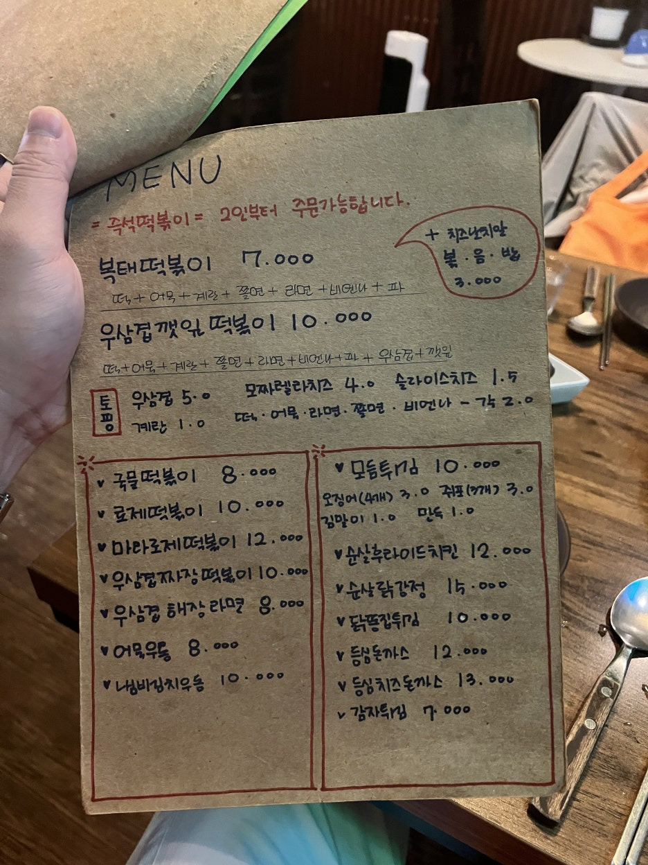 대표 메뉴인 복태떡볶이는 매콤하면서도 깊은 맛이 일품이었고, 라면 사리를 넣으니 국물이 더욱 진해져서 술안주로도, 식사로도 충분했습니다. 치킨과 볶음밥까지 더해지니 포만감이 상당했고, 여러 명이 함께 가면 세트 메뉴 구성이 특히 만족스러울 것 같았어요.