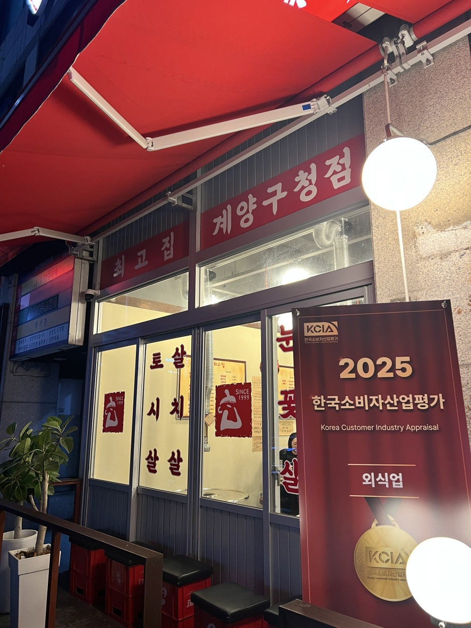 인천 계양구청 인근, 빨간 간판이 눈에 띄는 ‘최고집 계양구청점’에 다녀왔습니다. 이곳은 ‘토살시찰살살’이라는 문구처럼 **육질과 풍미**에 진심인 직화구이 전문점이에요. 2025 한국소비자산업평가 외식업 부문에서도 인증받은 곳이라 ‘믿고 먹는 고깃집’이라는 표현이 잘 어울립니다.