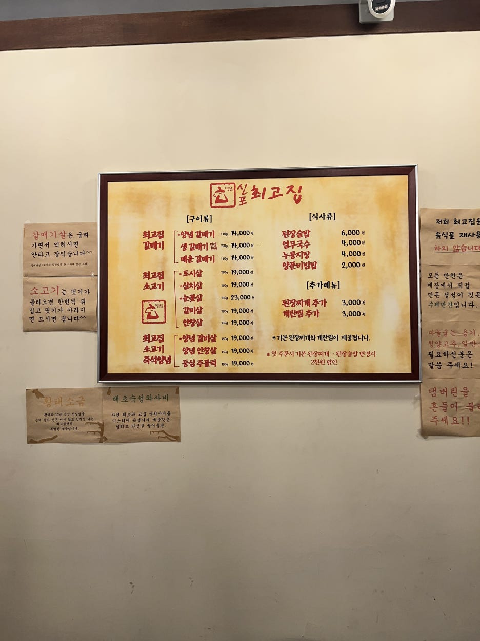 모든 고기에는 기본 반찬 세트 + 된장찌개 + 계란찜이 제공된다고 하네요.
