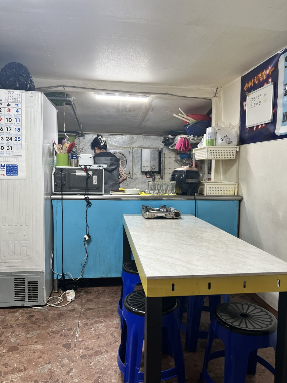 가게는 오래된 정겨운 분위기로, 주방에서 바로 끓여내는 냄새가 식욕을 자극합니다. 좌석은 4인 테이블 기준으로 깔끔하게 배치되어 있고, 주인 아주머니가 직접 요리를 하세요.