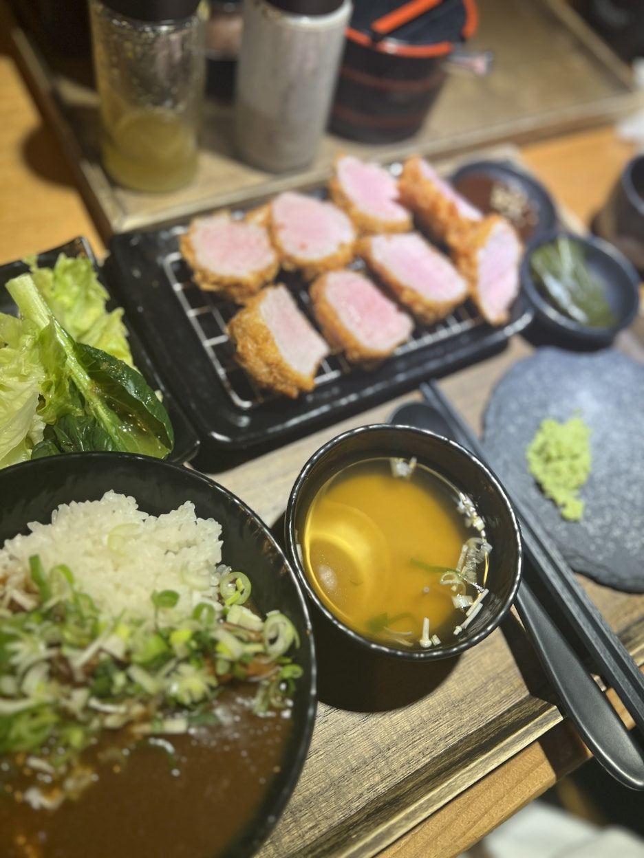 밥·장국·샐러드는 깔끔하고 심플하며, 돈카츠 본연의 맛을 강조하는 구성입니다. 와사비와 곁들여 먹으면 고기의 단맛이 더 또렷하게 살아납니다.